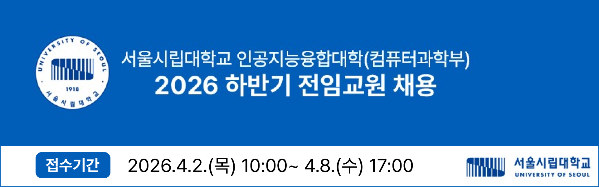 [서울시립대학교 컴퓨터과학부] 2026학년도 1학기 전임교원 초빙 공고