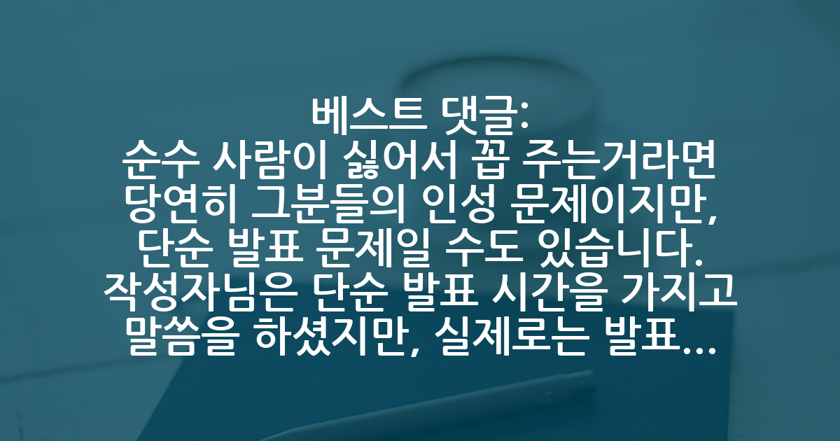 그냥 못된 사람들이라서 꼽 주는 거 아니면 단순히 발표시간이 절대적으로 길어서가 아니라 "짧게 끝낼 수 있는 내용"을 장황하게 길게 늘어뜨려서 그럴 수도 있습니다. 정리해서 핵심만 명확하게 전달하는 능력도 중요하니까요