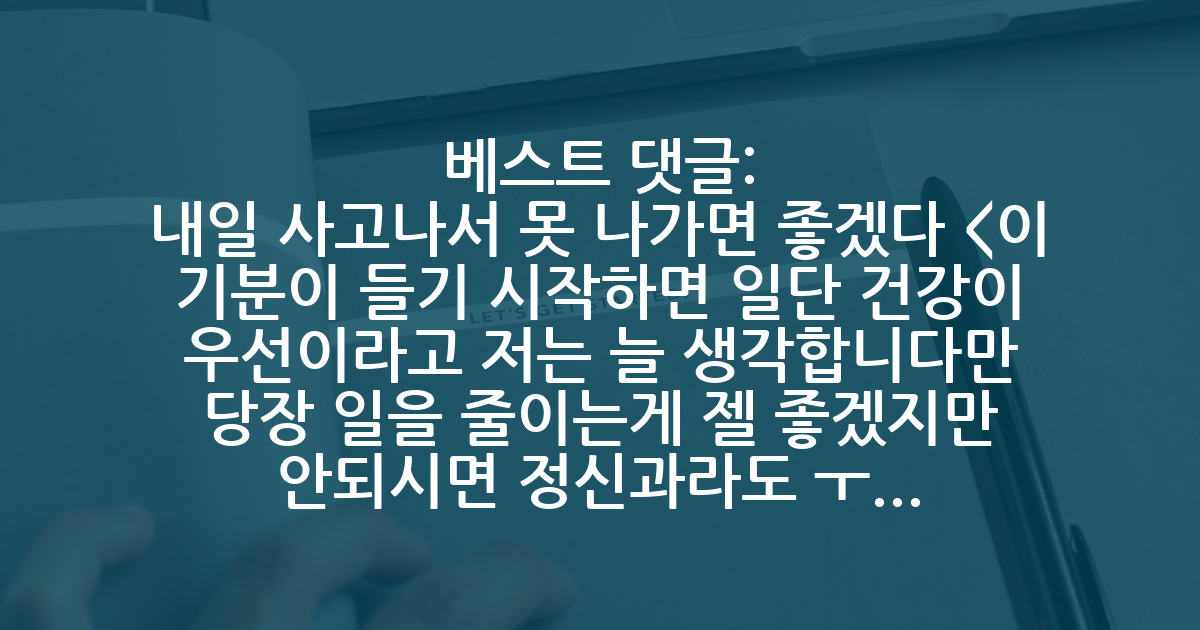 BEST내일 사고나서 못 나가면 좋겠다 <이 기분이 들기 시작하면 일단 건강이 우선이라고 저는 늘 생각합니다만 당장 일을 줄이는게 젤 좋겠지만 안되시면 정신과라도 ㅜ 생각보다 약이 도움돼요 감정조절에