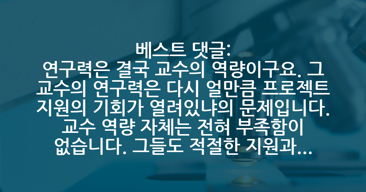 BEST연구력은 결국 교수의 역량이구요. 그 교수의 연구력은 다시 얼만큼 프로젝트 지원의 기회가 열려있냐의 문제입니다. 교수 역량 자체는 전혀 부족함이 없습니다. 그들도 적절한 지원과 환경이 뒷받힘되면 충분한 퍼포먼스를 낼 수 있는데 그게 별로 없는게 문제죠. 그나마 지거국이 지역의 거점 역할을 해서 기본적인 지원정도는 받습니다. 문제는 질좋은 학생의 수가 부족하지 그들을 키울 능력은 오히려 어줍잖은 대학보다 낫습니다