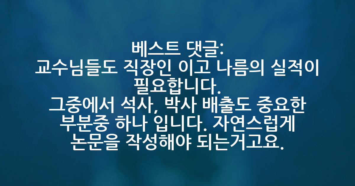 BEST교수님들도 직장인 이고 나름의 실적이 필요합니다. 그중에서 석사, 박사 배출도 중요한 부분중 하나 입니다. 자연스럽게 논문을 작성해야 되는거고요.