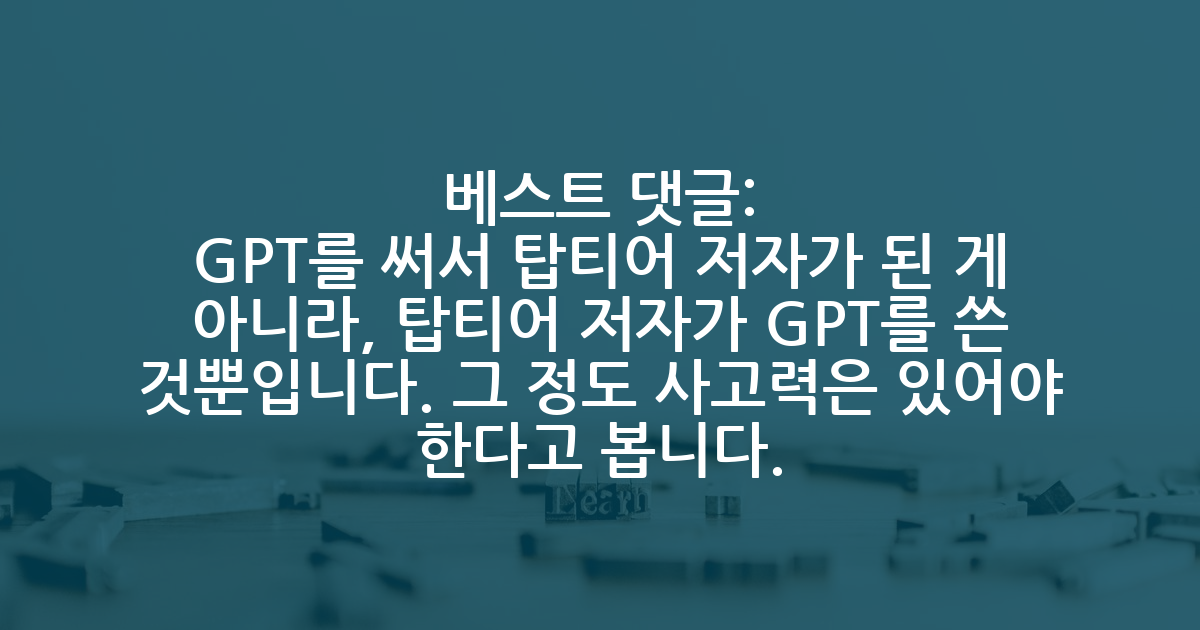 GPT를 써서 탑티어 저자가 된 게 아니라, 탑티어 저자가 GPT를 쓴 것뿐입니다. 그 정도 사고력은 있어야 한다고 봅니다.