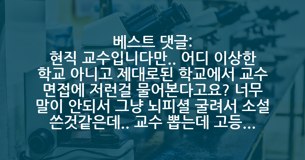 BEST현직 교수입니다만.. 어디 이상한 학교 아니고 제대로된 학교에서 교수 면접에 저런걸 물어본다고요? 너무 말이 안되서 그냥 뇌피셜 굴려서 소설 쓴것같은데.. 교수 뽑는데 고등학교를 왜 물어보며 누굴 아는지며 그냥 지원이며 너무 요즘 분위기에 안맞는 얘기라 왜 이런 거짓말을 치는거지 싶은 생각이 드는데요ㅎ