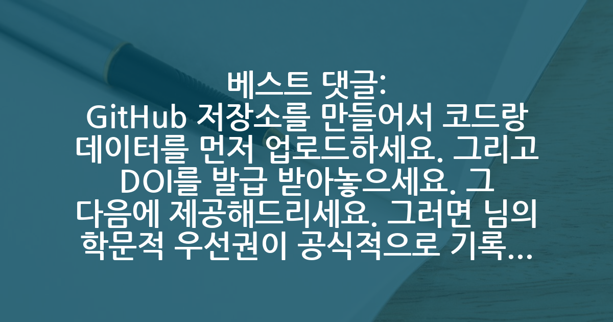 BESTGitHub 저장소를 만들어서 코드랑 데이터를 먼저 업로드하세요. 그리고 DOI를 발급 받아놓으세요. 그 다음에 제공해드리세요. 그러면 님의 학문적 우선권이 공식적으로 기록되기 때문에 아무 문제 없어요. 님 고유의 아이디어에 대한 표절을 걱정하시나 본데, 이 방식으로 기록을 남겨놓으면 표절을 당하더라도 해당 저널에 메일 보내서 공식적으로 항의하고 해당 논문은 철회시킬 수 있어요. 표절이 아니고 단순 활용이면 코드랑 데이터는 원래 활용될 수 있어야 의미가 있는 거예요. 님 혼자만 알고 있으면, 님이 제시한 실험 결과를 못믿는다고 해도 할 말이 없는 거예요. 재현성이 없으면 그 자체로 거절 사유가 될 수 있어요.