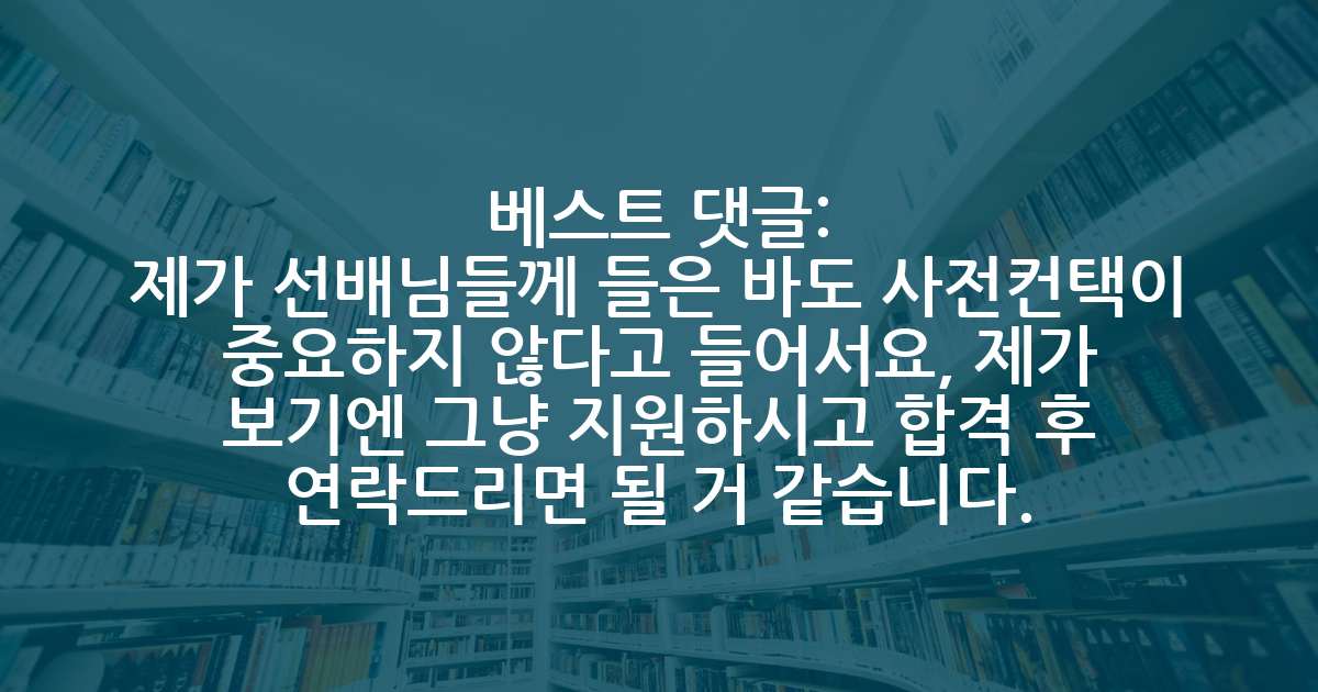 BEST제가 선배님들께 들은 바도 사전컨택이 중요하지 않다고 들어서요, 제가 보기엔 그냥 지원하시고 합격 후 연락드리면 될 거 같습니다.