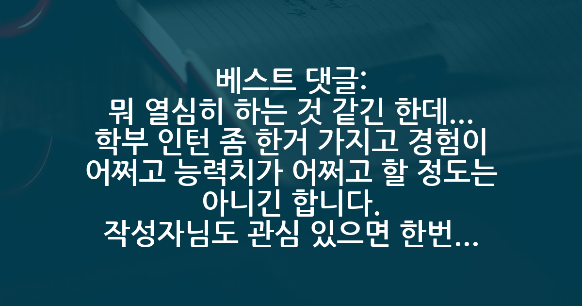 14 - 뭐 열심히 하는 것 같긴 한데... 학부 인턴 좀 한거 가지고 경험이 어쩌고 능력치가 어쩌고 할 정도는 아니긴 합니다.