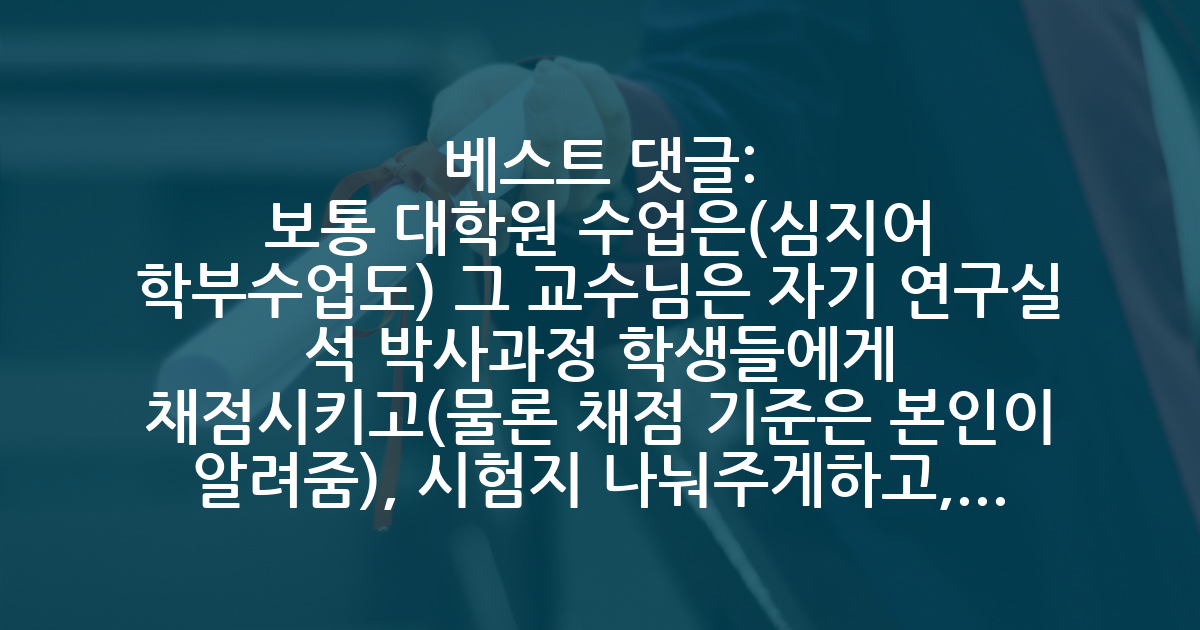 BEST 보통 대학원 수업은(심지어 학부수업도) 그 교수님은 자기 연구실 석 박사과정 학생들에게 채점시키고(물론 채점 기준은 본인이 알려줌), 시험지 나눠주게하고, 심지어 질문조차 받아서 수정해주라합니다. 물론 성적이 바뀌는 경우는 교수님께 올리지만요.