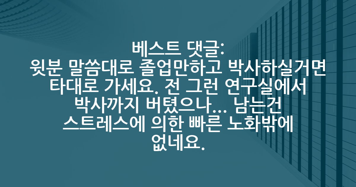 BEST윗분 말씀대로 졸업만하고 박사하실거면 타대로 가세요. 전 그런 연구실에서 박사까지 버텼으나... 남는건 스트레스에 의한 빠른 노화밖에 없네요.
