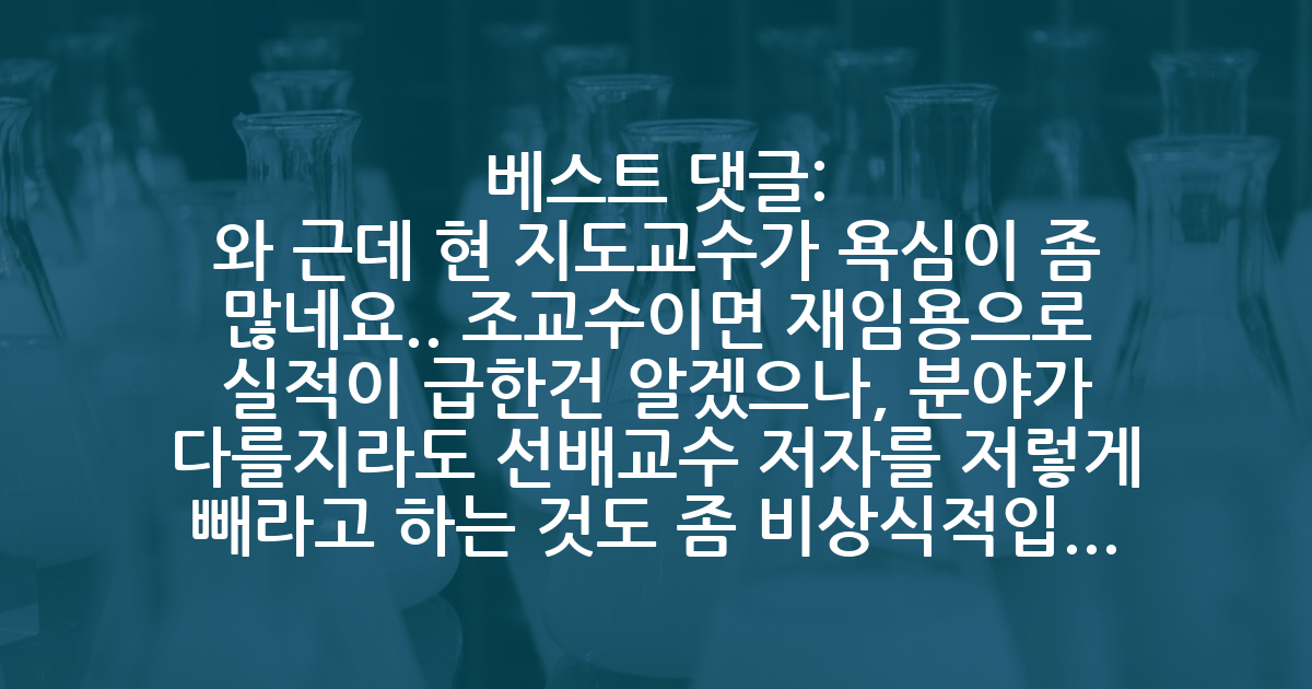 BEST와 근데 현 지도교수가 욕심이 좀 많네요.. 조교수이면 재임용으로 실적이 급한건 알겠으나, 분야가 다를지라도 선배교수 저자를 저렇게 빼라고 하는 것도 좀 비상식적입니다. 연구윤리적으로 지도는 전 교수님이 더 많이 했구요.. 제 생각에는, 현재 교수님에게 솔직하게 이전 교수님이 많은 지도를 해주셔서 공동 교신으로 넣는게 윤리적으로 맞는것 같다고 최대한 좋게 말씀드려보시거나, 아니면 그냥 바로 이전교수님에게 이런이런 상황인데 저자 관련해서 지금 교수님과 해결 부탁드려도 되는지 여쭤보시거나 해야할 것 같아요. 원래 저자는 교수님들끼리 정해야지 학생이 정하기도 애매하죠...