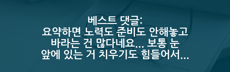 BEST요약하면 노력도 준비도 안해놓고 바라는 건 많다네요... 보통 눈 앞에 있는 거 치우기도 힘들어서 딴 거 신경 쓸 시간이 없을텐데
