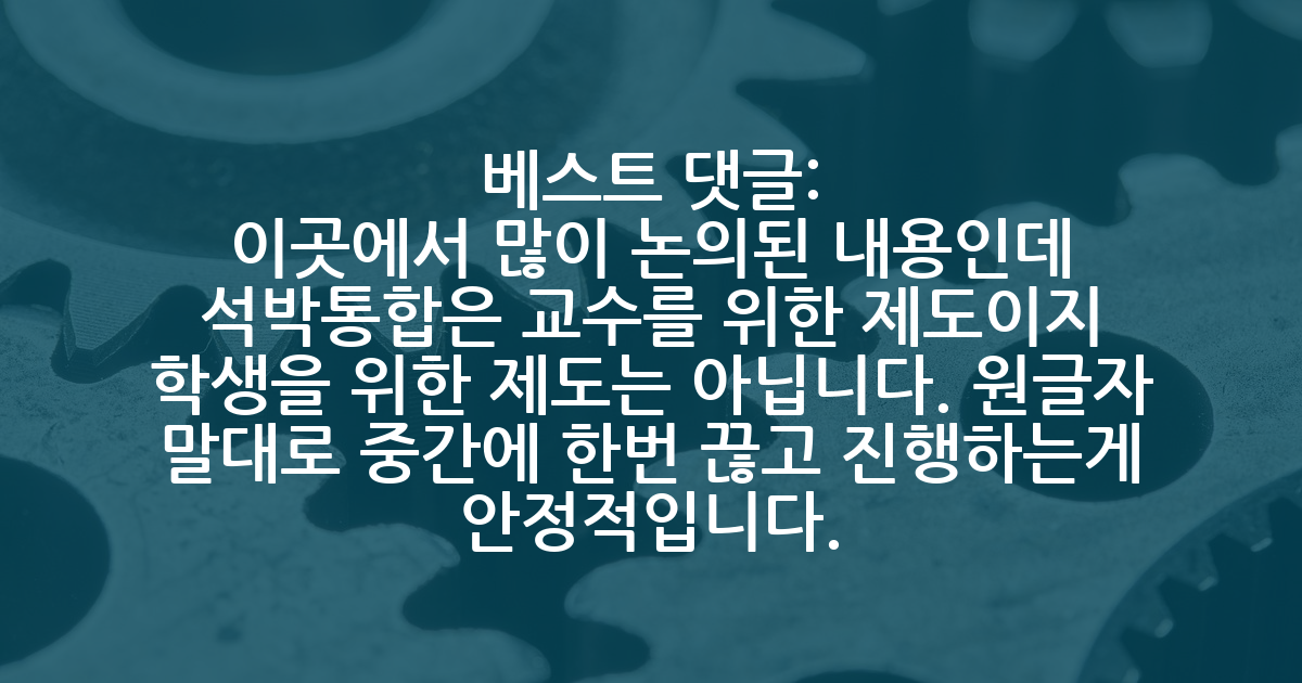 BEST이곳에서 많이 논의된 내용인데 석박통합은 교수를 위한 제도이지 학생을 위한 제도는 아닙니다. 원글자 말대로 중간에 한번 끊고 진행하는게 안정적입니다.