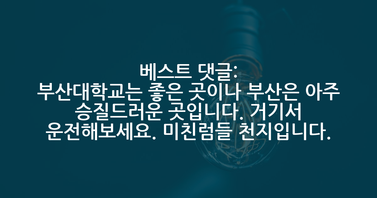 BEST부산대학교는 좋은 곳이나 부산은 아주 승질드러운 곳입니다. 거기서 운전해보세요. 미친럼들 천지입니다.