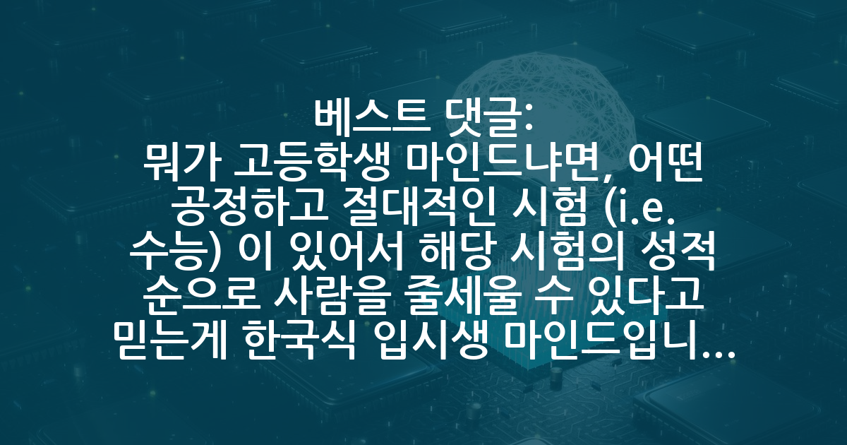 다른 학생들이 모든 과목 다 풀고 스펙 빵빵한데 떨어진거면 불공정한거 인정해주는데 그런정황 잘 모르면서 그런말 하는건...