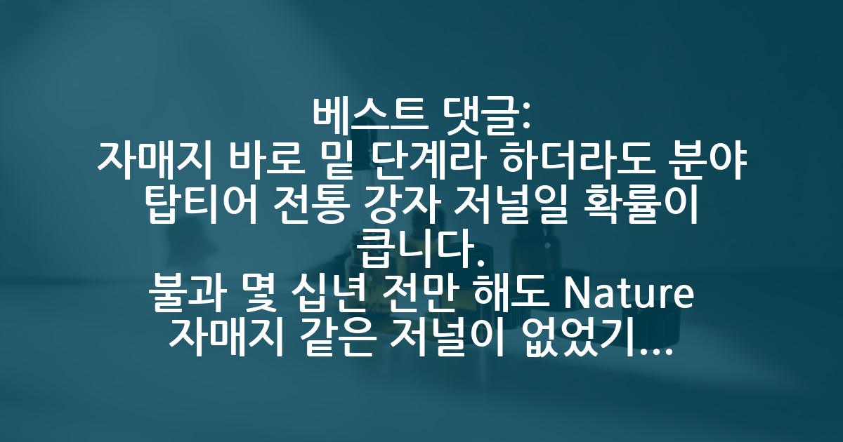 BEST자매지 바로 밑 단계라 하더라도 분야 탑티어 전통 강자 저널일 확률이 큽니다. 불과 몇 십년 전만 해도 Nature 자매지 같은 저널이 없었기 때문에(2000년 이후부터 나왔고 2010 이후부터 위상이 높아졌죠), 보통 현직 50대 이상 교수님들 젊었을 때 주요 실적들이 다 그런 전통 저널일겁니다. 인용수도 보통 개인 실적중 탑이 이런 저널들이구요. 예로 JACS, PNAS 같은 애들이 네이처 자매지에 굳이 꿀리지 않습니다. 옛날 사람이면 더 선호할꺼고.. 임용 때 심사위원들 기준으로 생각해보세요.