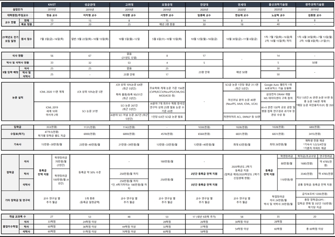 국내 인공지능 대학원 정보입니다. (AI 대학원 정보글)