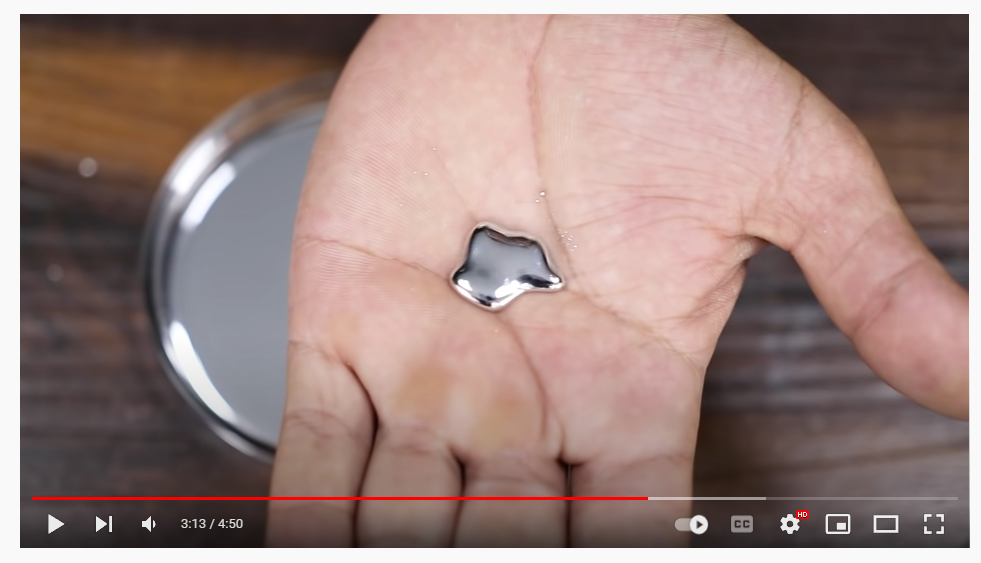 첨부된 사진은 상온에 있는 수은을 손바닥에 올려놓은 건데, 제가 기억하는 그 장난감은 손 위에서도 거의 완벽한 구형을 유지했었어요. 이 장난감을 기억하시는 분이 계실까요??