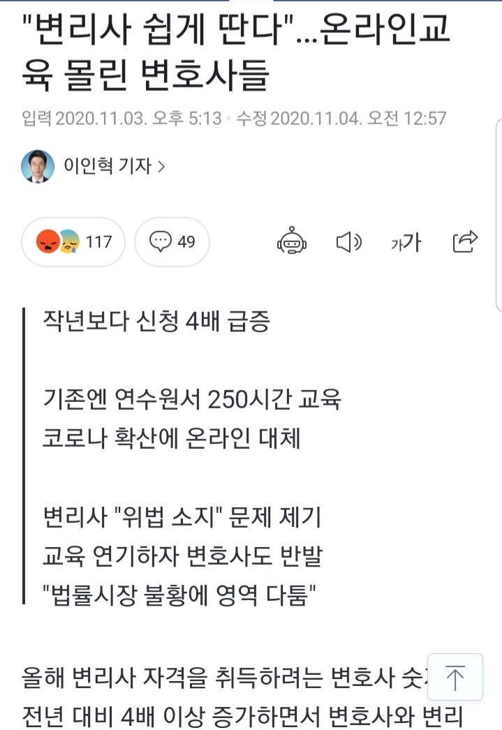 변호사들에게 변리사부여되는것 때문에 한탄을 많이 하네요..