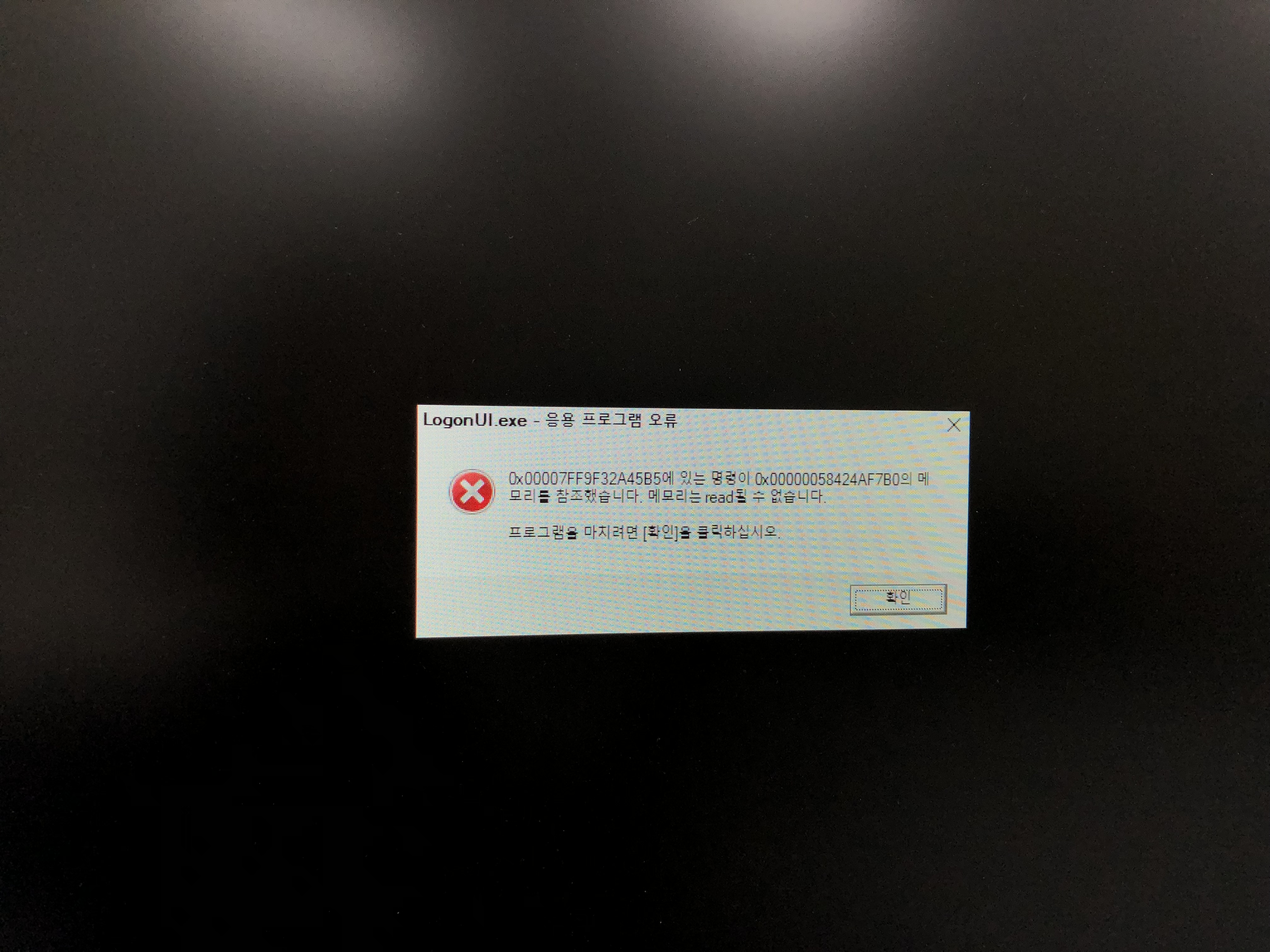 첨부한 사진처럼 오류가 뜨고 지금 컴퓨터를 아예 사용 못 하고 있어요ㅠㅠ 재부팅해도 그대로구요,,