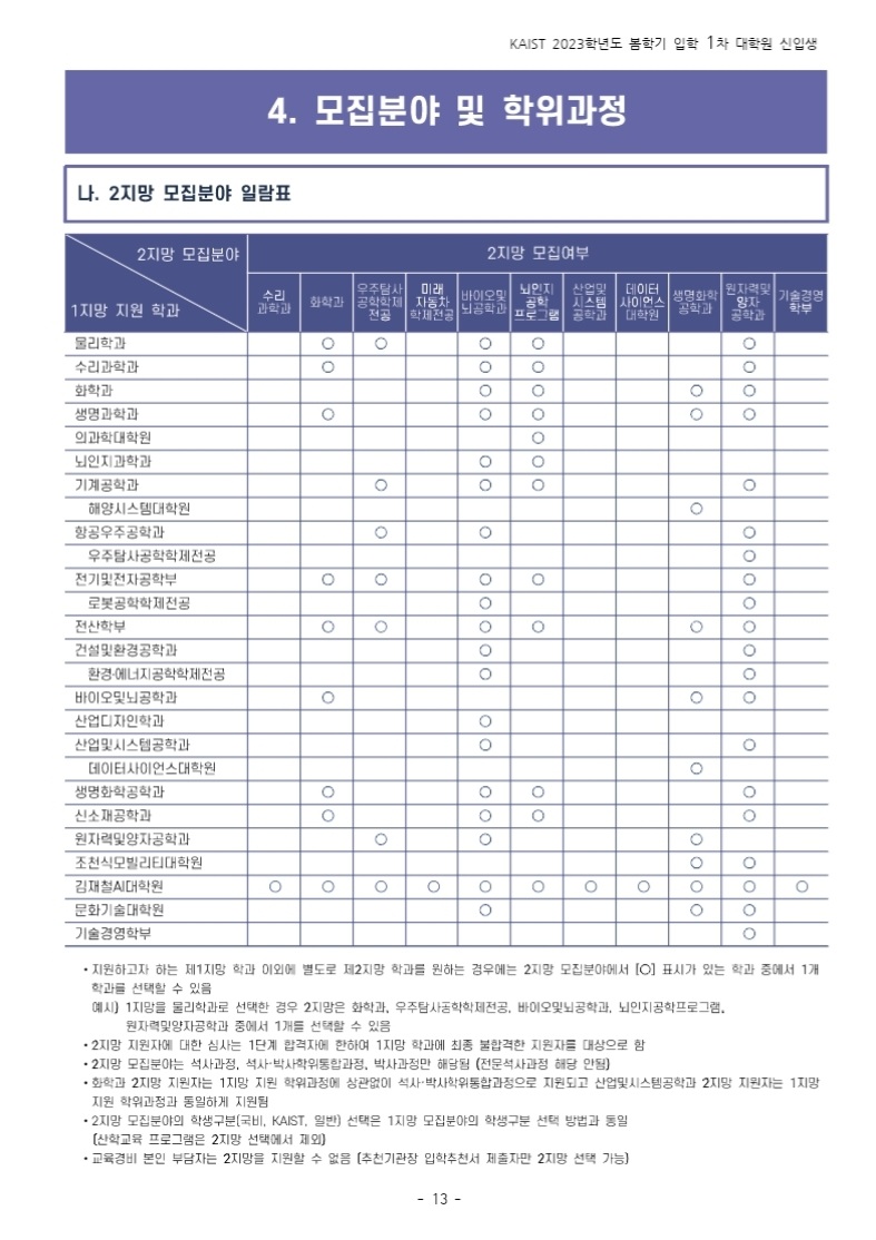 카이스트 경영공학부는 2지망 지원이 불가한가요?