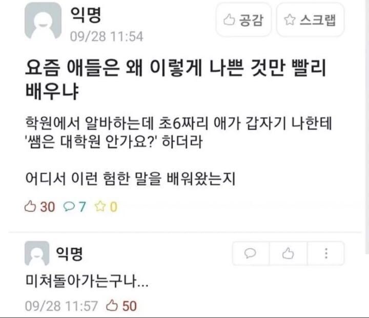 요즘 애들은 왜 이렇게 나쁜 것만 빨리 배우냐!