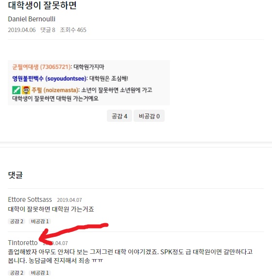 Tintoretto의 등장으로 댓글흐름은 산으로 가게됨. 갓센세....